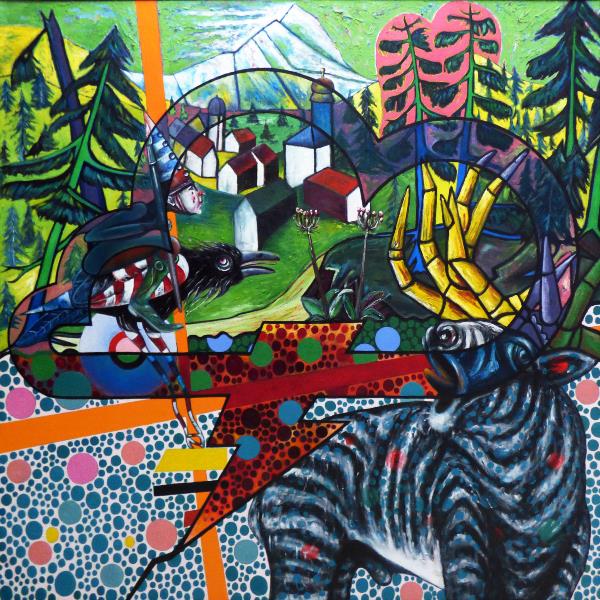 Öl auf Baumwolle, auf MDF geblockt, datiert 12.10.2024, Leistenrahmen, 180 x 180 cm