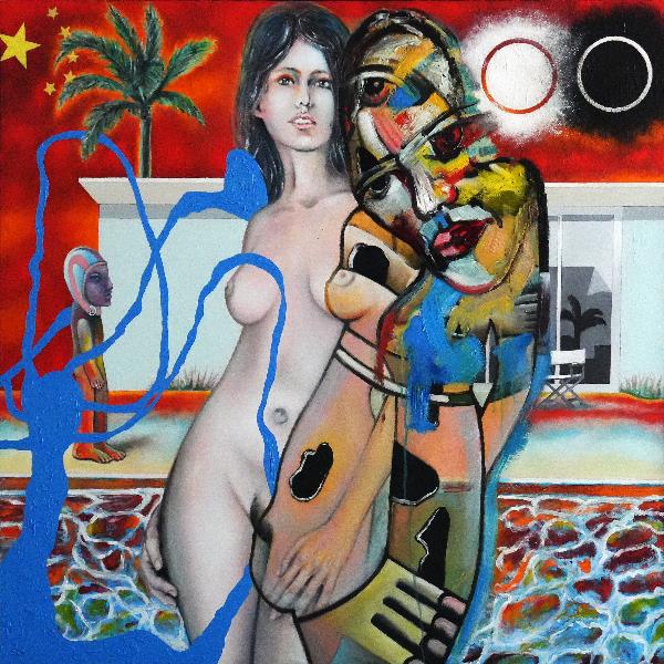 Öl auf Baumwolle, auf MDF geblockt, datiert 16.09.2025, Schattenfugenrahmen, 100 x 100 cm